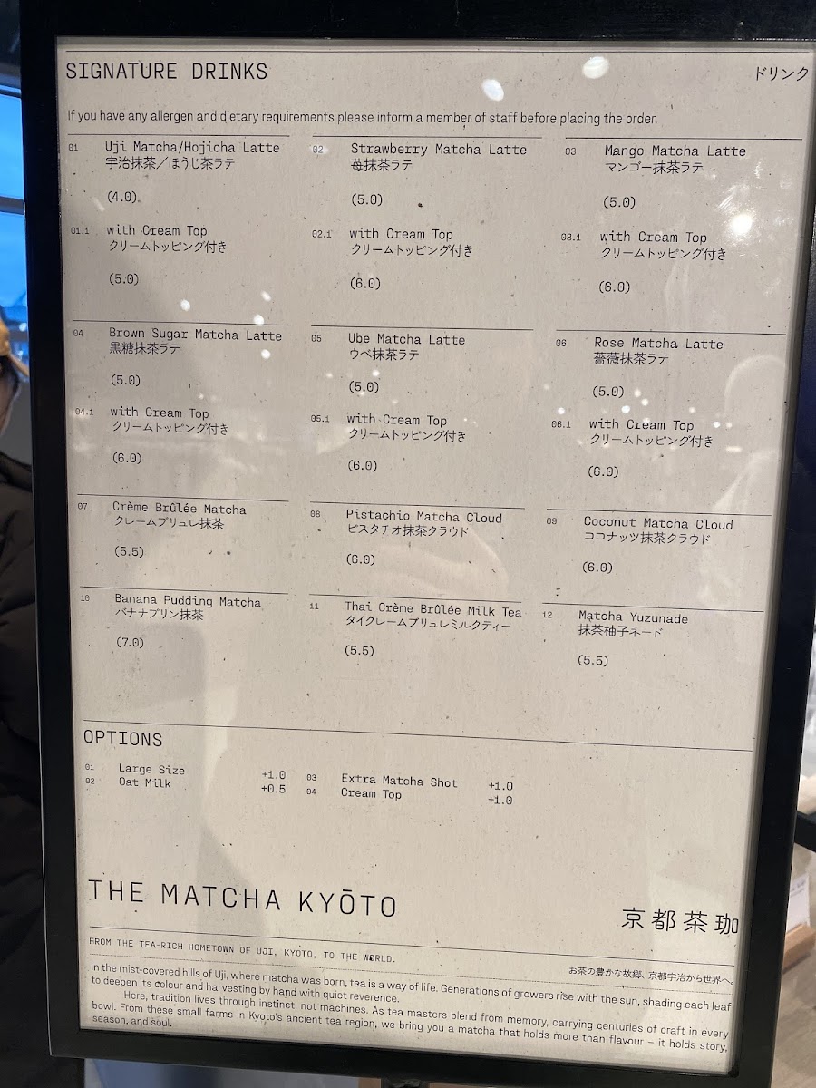 THE MATCHA KYŌTO (Selfridges) brings an authentic, artisanal matcha experience to Manchester’s vibrant Selfridges on the 3rd floor. Renowned for its rich Uji Matcha and Hojicha lattes (£4.00), this coffee shop elevates traditional Japanese green tea with innovative blends like Strawberry, Mango, and Brown Sugar Matcha Lattes (£5.00). The menu also features indulgent choices such as Crème Brûlée Matcha (£5.50) and luxurious Pistachio and Coconut Matcha Clouds (£6.00), alongside the unique Banana Pudding Matcha (£7.00), a crowd favorite that brilliantly balances sweetness and texture.
